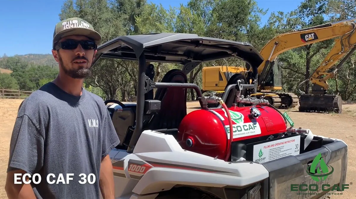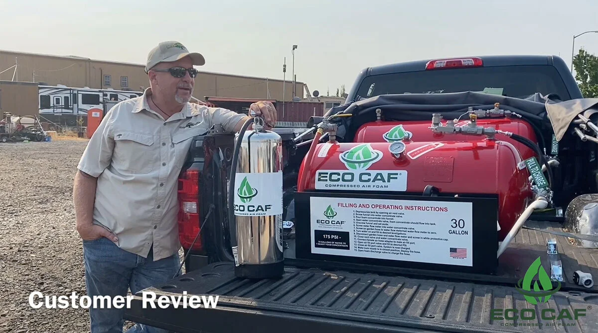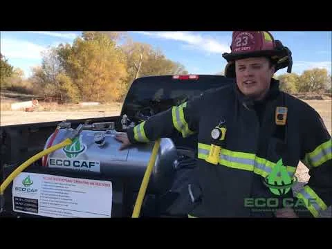 Dave from ECO Product Systems, LLC demonstrates the ECO CAF 3 and ECO CAF 30 foam fire extinguishers. As see, both the handheld fire foam system and fire skid are highly effective at fighting wildland fires as well as any other fires. ECO CAF systems are used effectively in a range of industries.